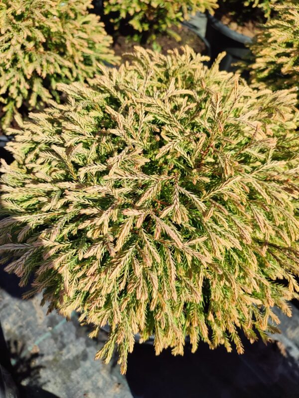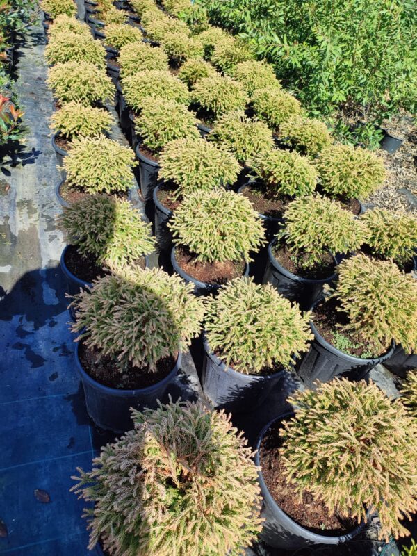 Genel Bilgi: Bu cultivar, parlak altın tonlarındaki yapraklarıyla dikkat çeker. Dayanıklı ve ömür boyu kalıcı bir süs bitkisidir.
