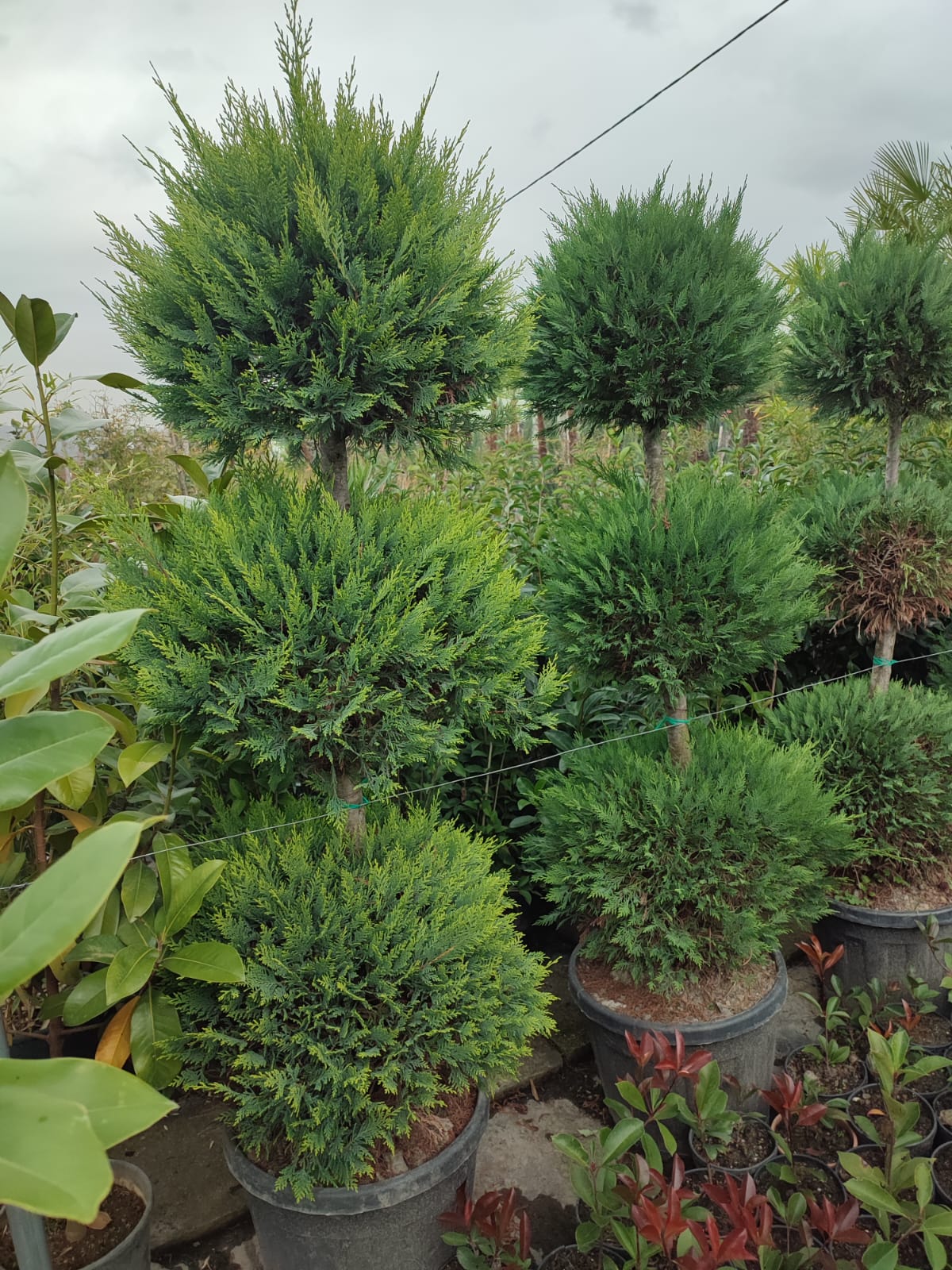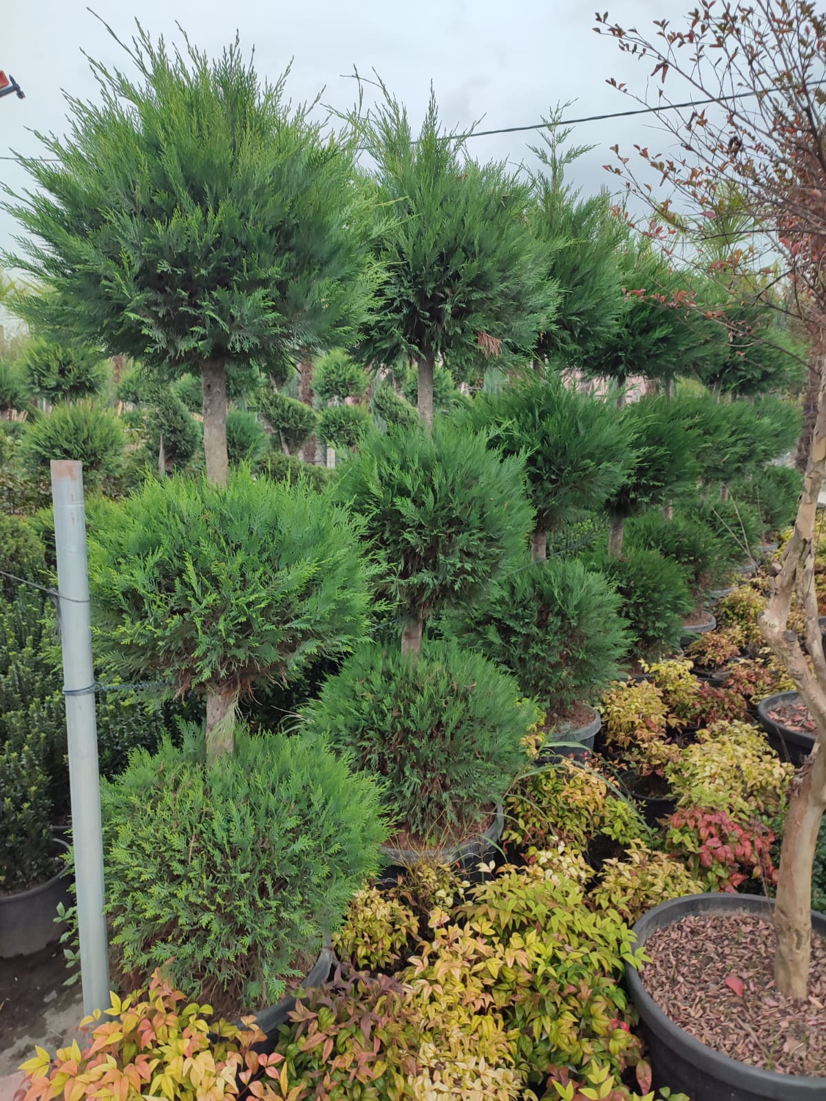 3 Top leylandi 45 litrelik saksılarda üç adet top şekli bulunan yaklaşık 200-250 cm boylarında satıştadır.