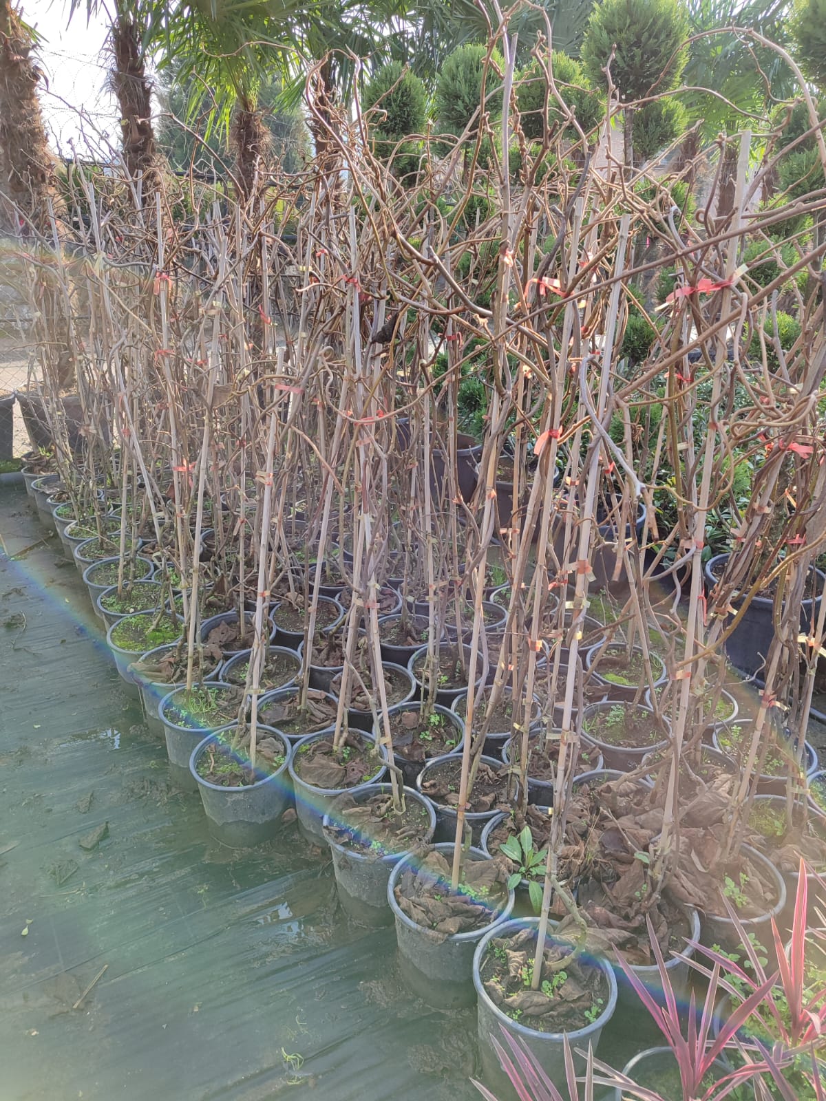 Mor salkım (Wisteria) 3-4 metre boylarında bambulu şekilde satıştadır.