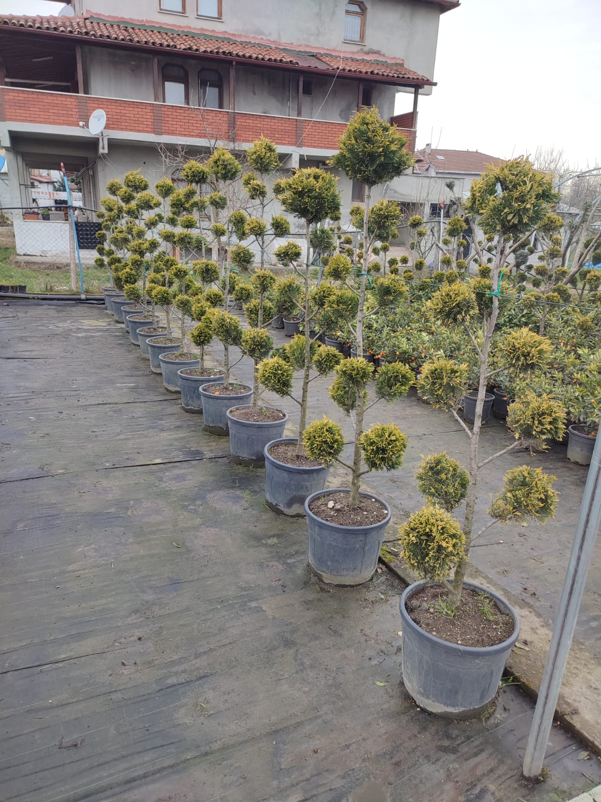 Ponpon şekilli budanmış goldriderlerimiz 35 litrelik saksıda yaklaşık 7-8 bulut şeklinde budanmış topları ile satıştadır.