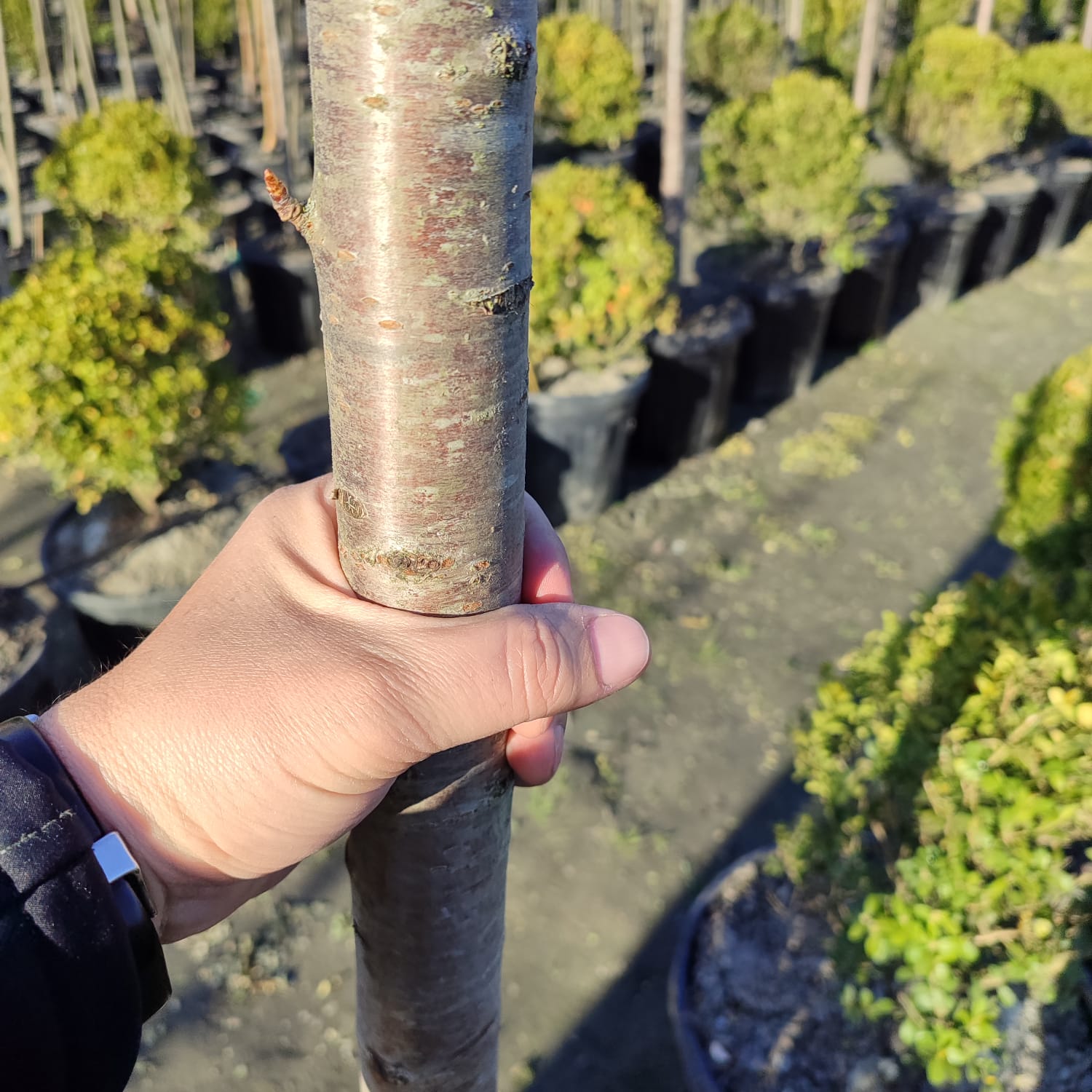 Süs Kirazı 16-18Q ( Kutur ) gövde çere kalınlığı, 55 litrelik saksıda stoklarda satıştadır.